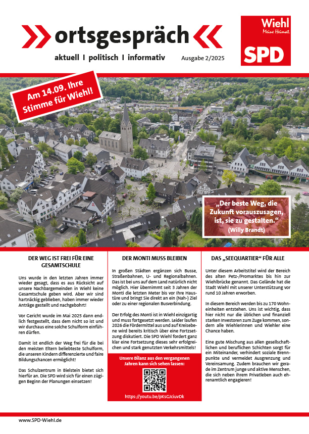 Seit 80 Jahren tragen wir nun ununterbrochen und maßgeblich Verantwortung für unsere Heimatstadt. Ohne die SPD wäre Wiehl nicht das, was es heute ist: